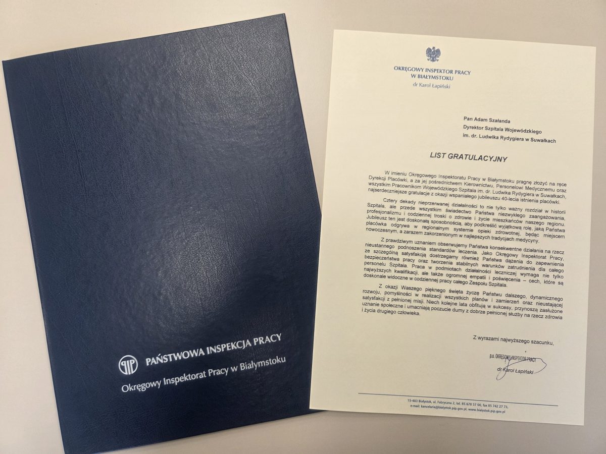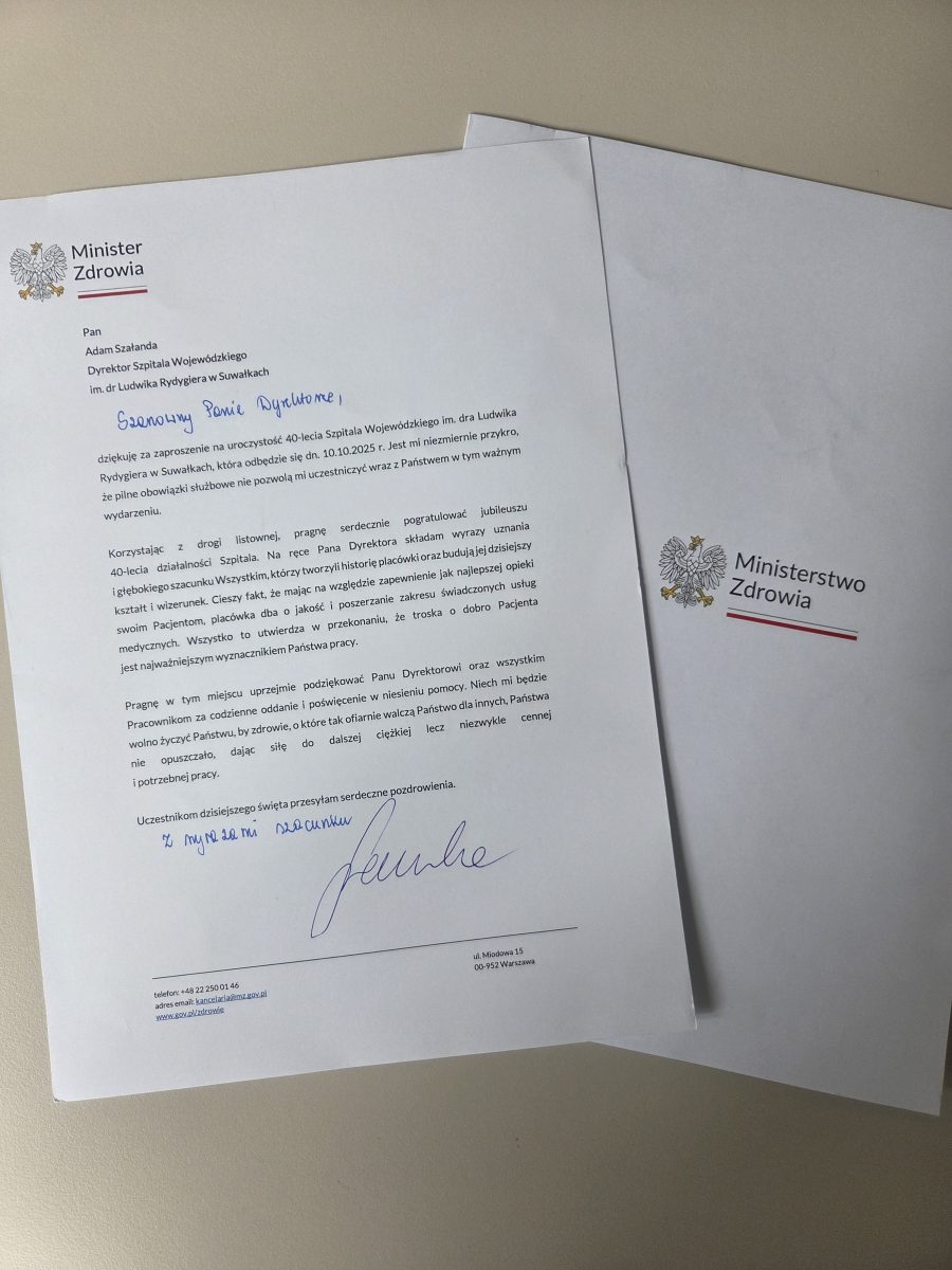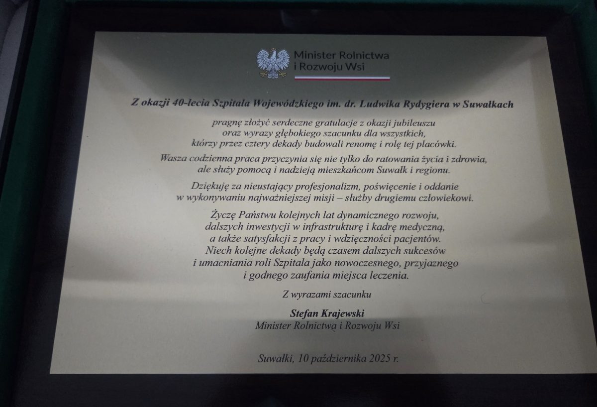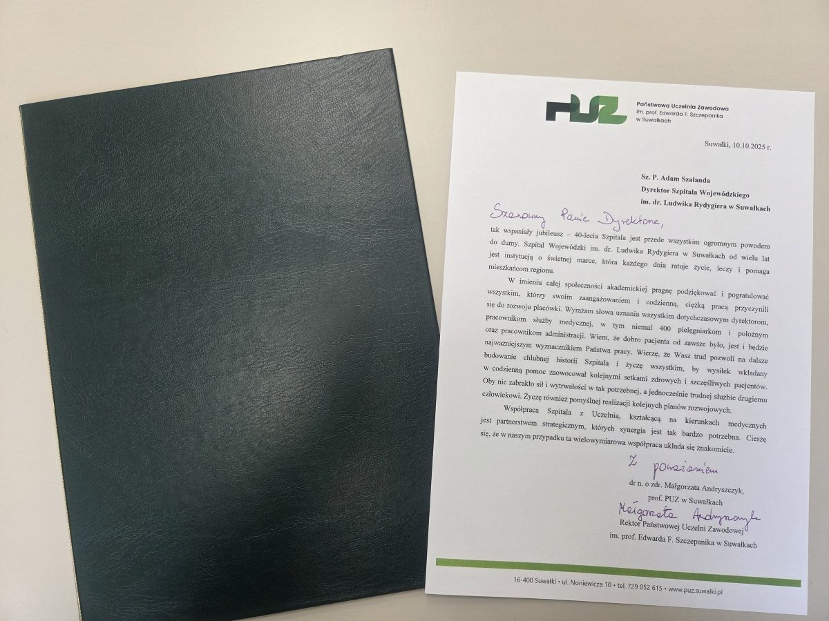 Szanowni Państwo, serdecznie dziękujemy za wszystkie życzenia, ciepłe słowa i obecność z okazji jubileuszu 40-lecia naszego Szpitala. Doceniamy pamięć, gratulacje, kwiaty oraz życzliwość, a Państwa wsparcie, szacunek i uznanie są dla nas niezwykle ważne i motywują nas do dalszej codziennej pracy. Cieszymy się, że nasza praca jest dostrzegana i doceniana przez społeczność, co sprawia nam ogromną satysfakcję.